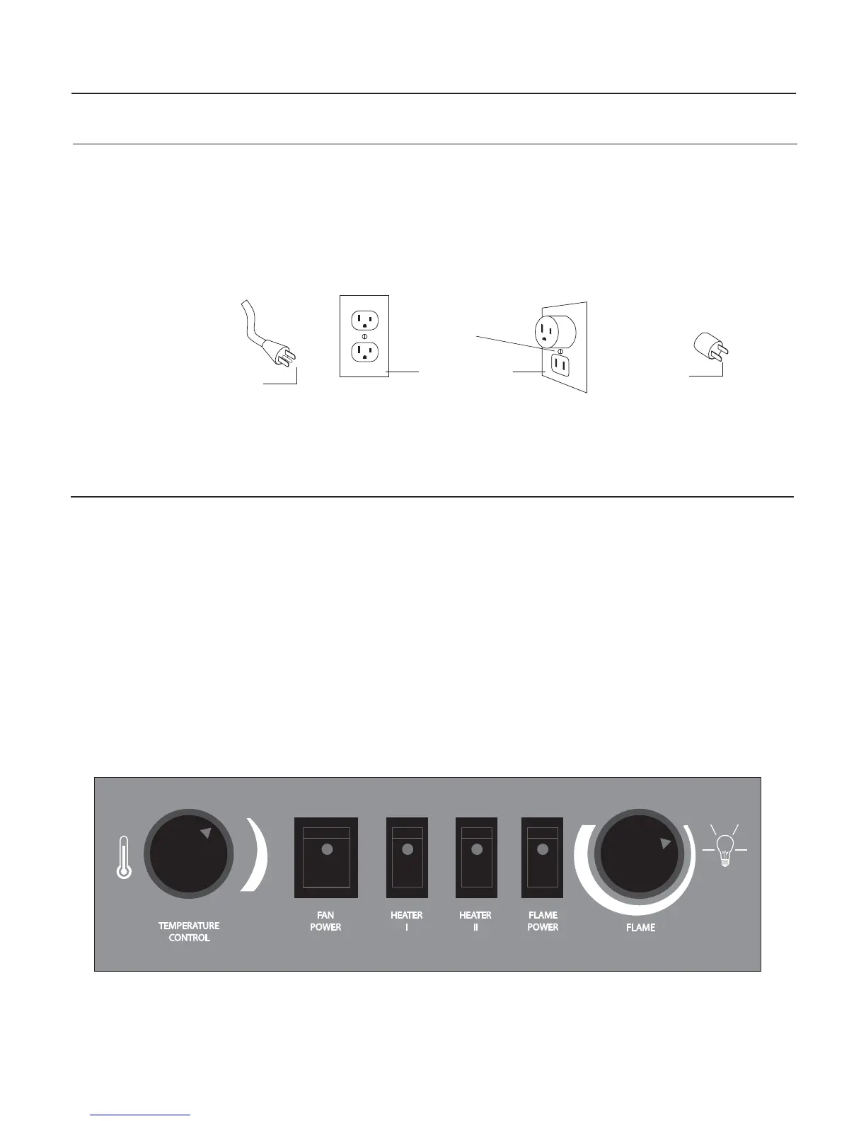 Note: The Flame and Heating system are controlled by separate power switches and can work independent