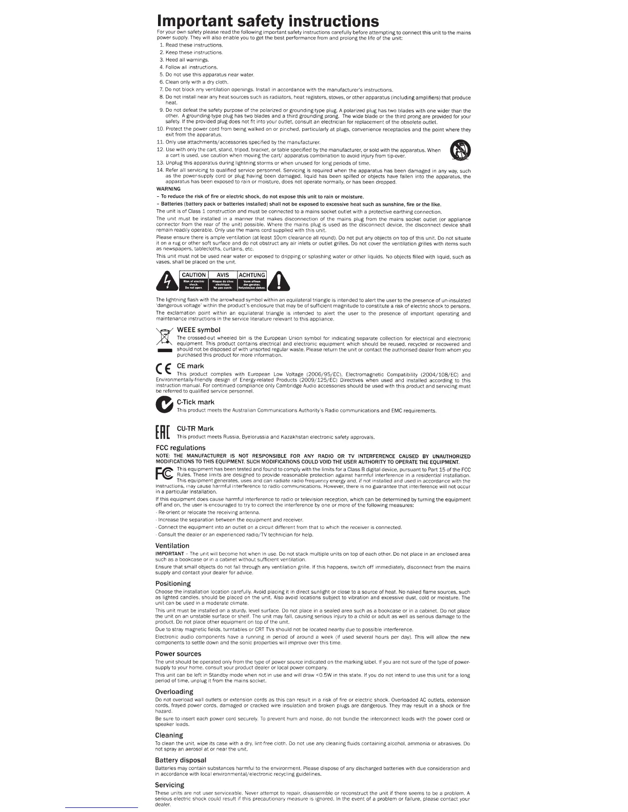 13. Unplug this apparatus during lightning storms or when unused for long periods of time.