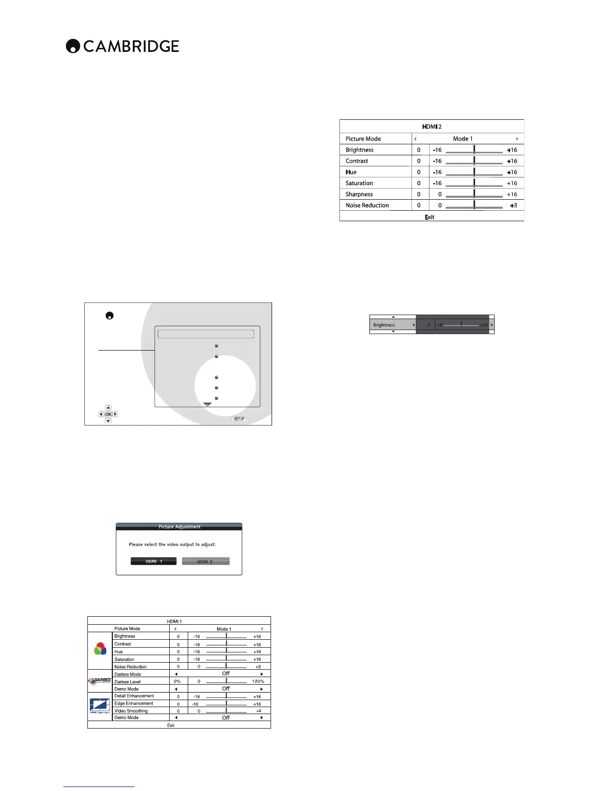 The following picture adjustment controls are available, for HDMI 1 and