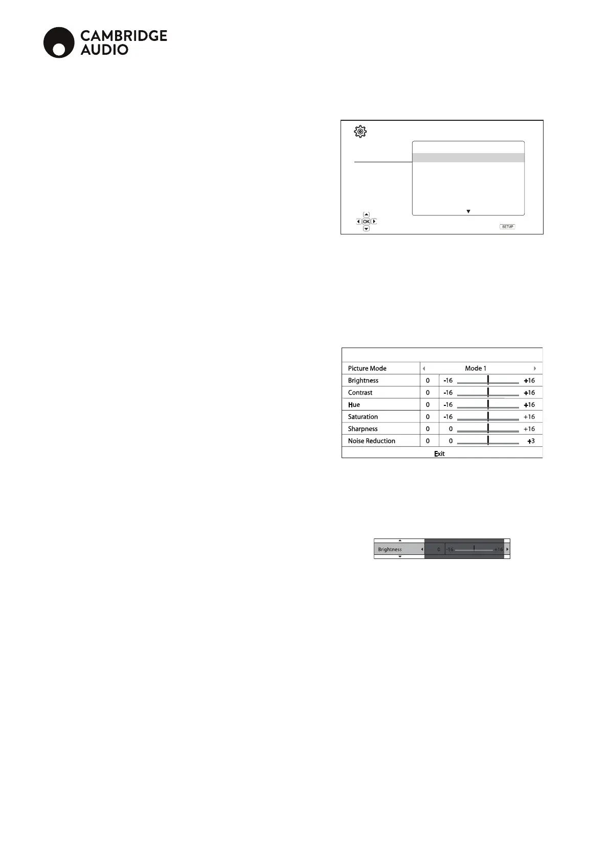 The following picture adjustment controls are available, for HDMI 1 and HDMI 2: