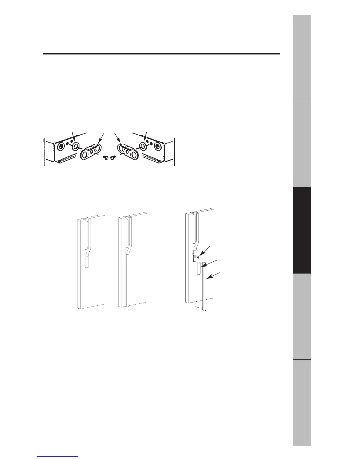 Interchange hinge and shim at top right with 2 plug buttons at top left of