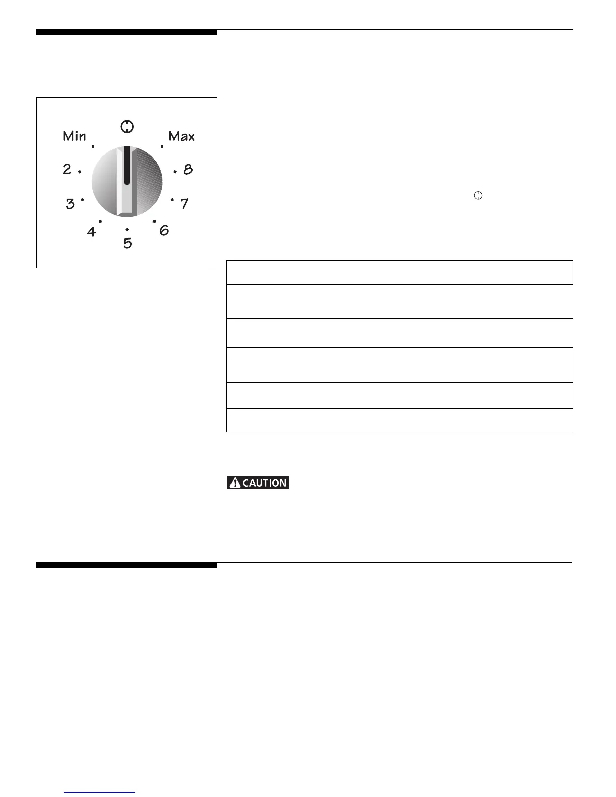 lower setting to finish cooking. The control knobs do not have to be set exactly