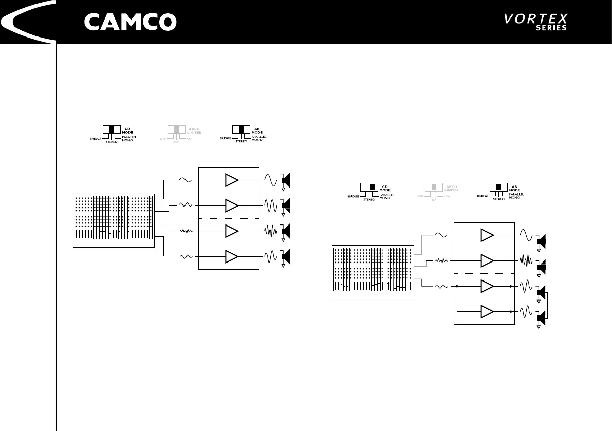 With one amplier set to Parallel-Mono the VORTEX 3 QUADRO is capable to