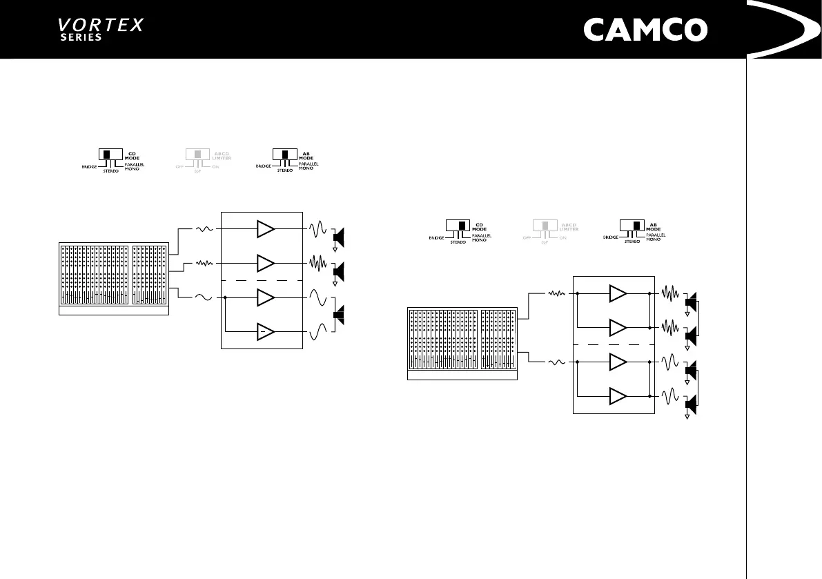 With ampliers A/B and C/D set to mono modes you will nearly have a normal