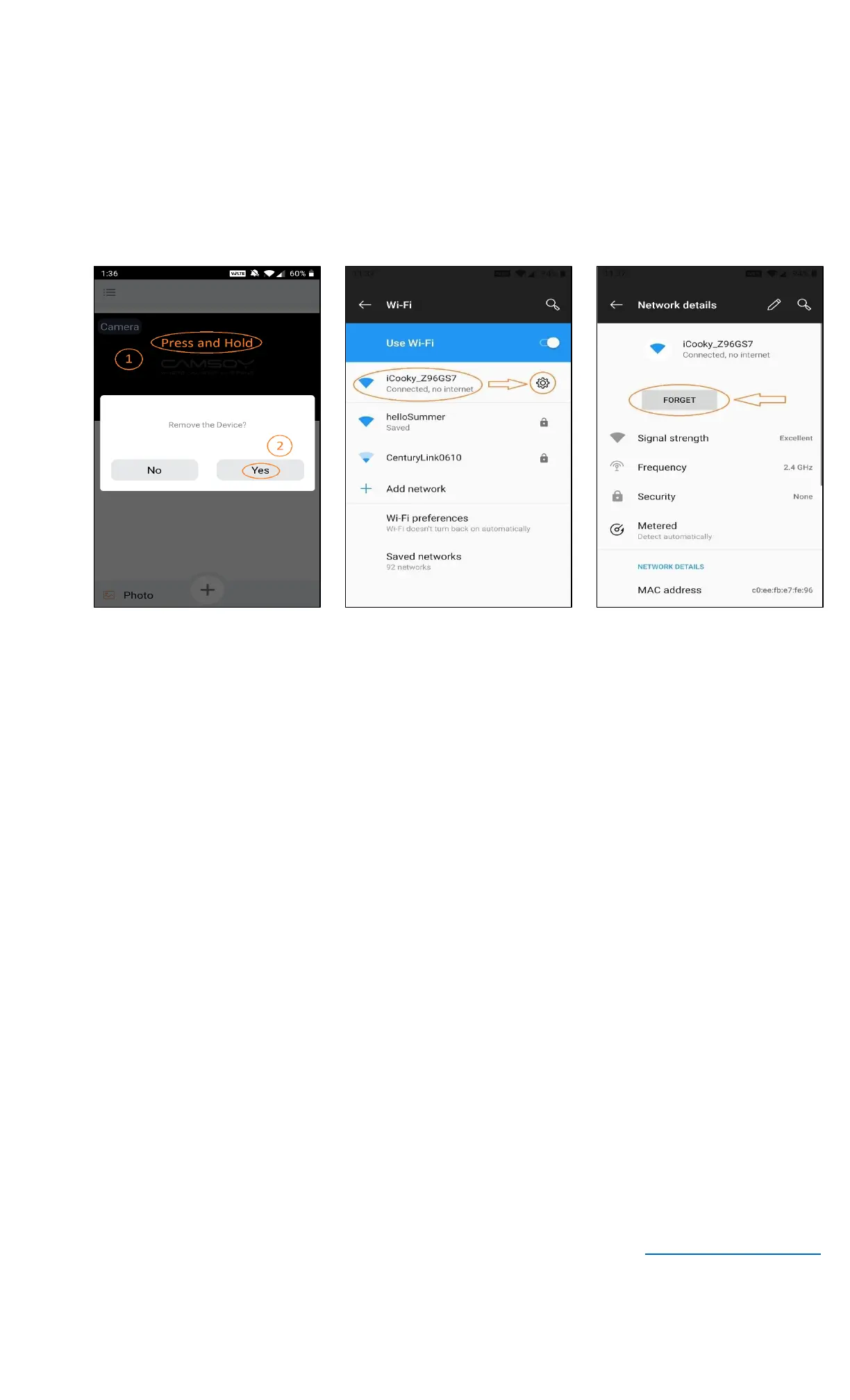 ▪ If your mobile device is connecting to the camera network, go to Settings, select Wi-Fi and forget the