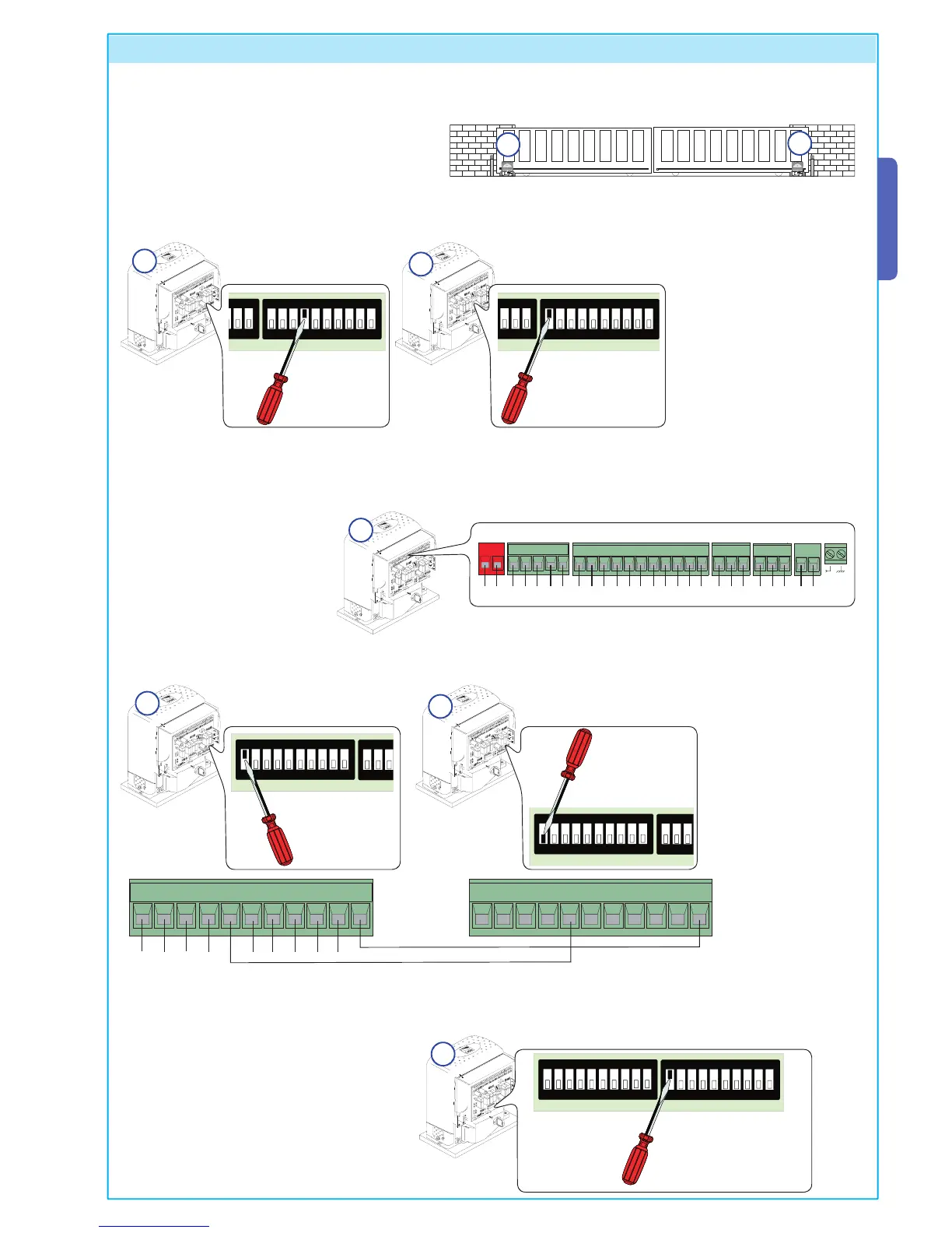nection for the gear motor and limit switches, p. 9).
