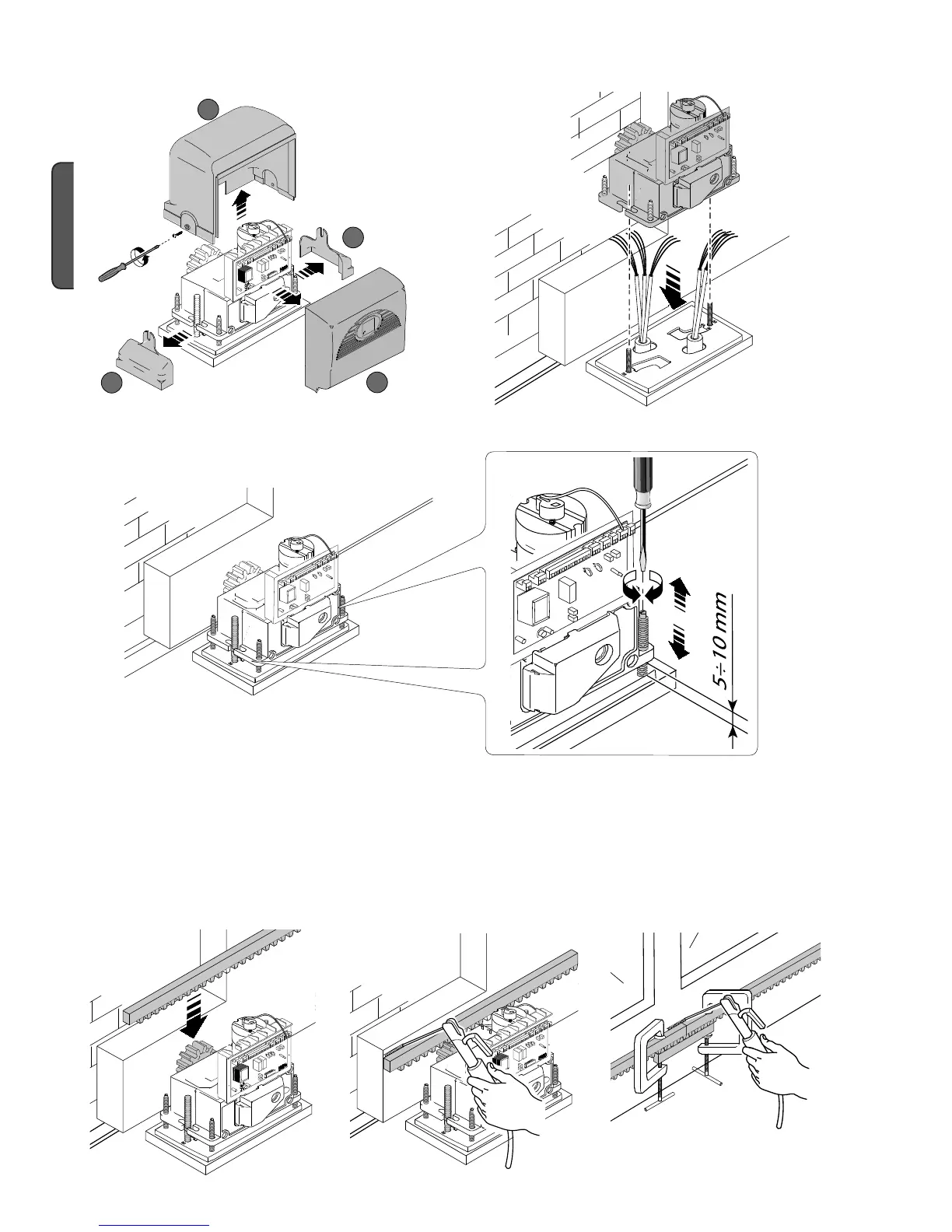 and position the gearmotor atop the plate. Careful! The electric cables must pass through the cable shafts.