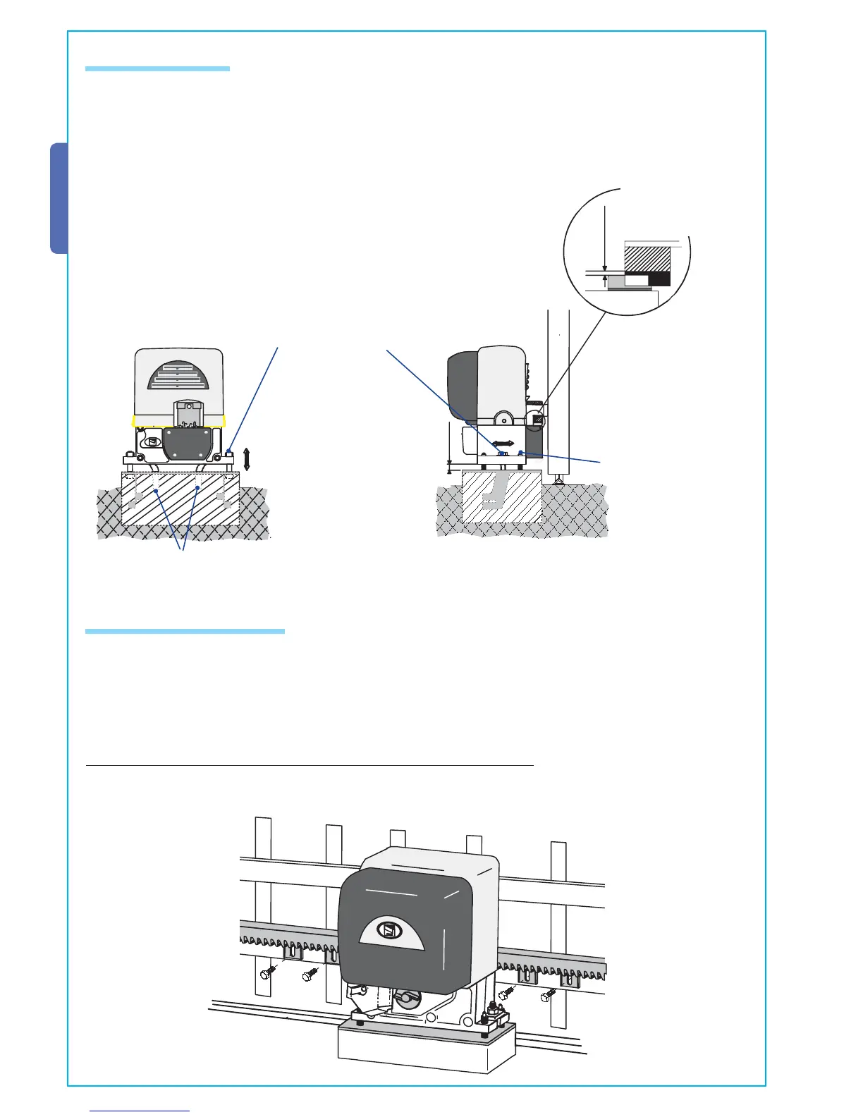 - when the rack is attached to the gate, adjust the feet using a screwdriver until the play between the pinion and the rack is