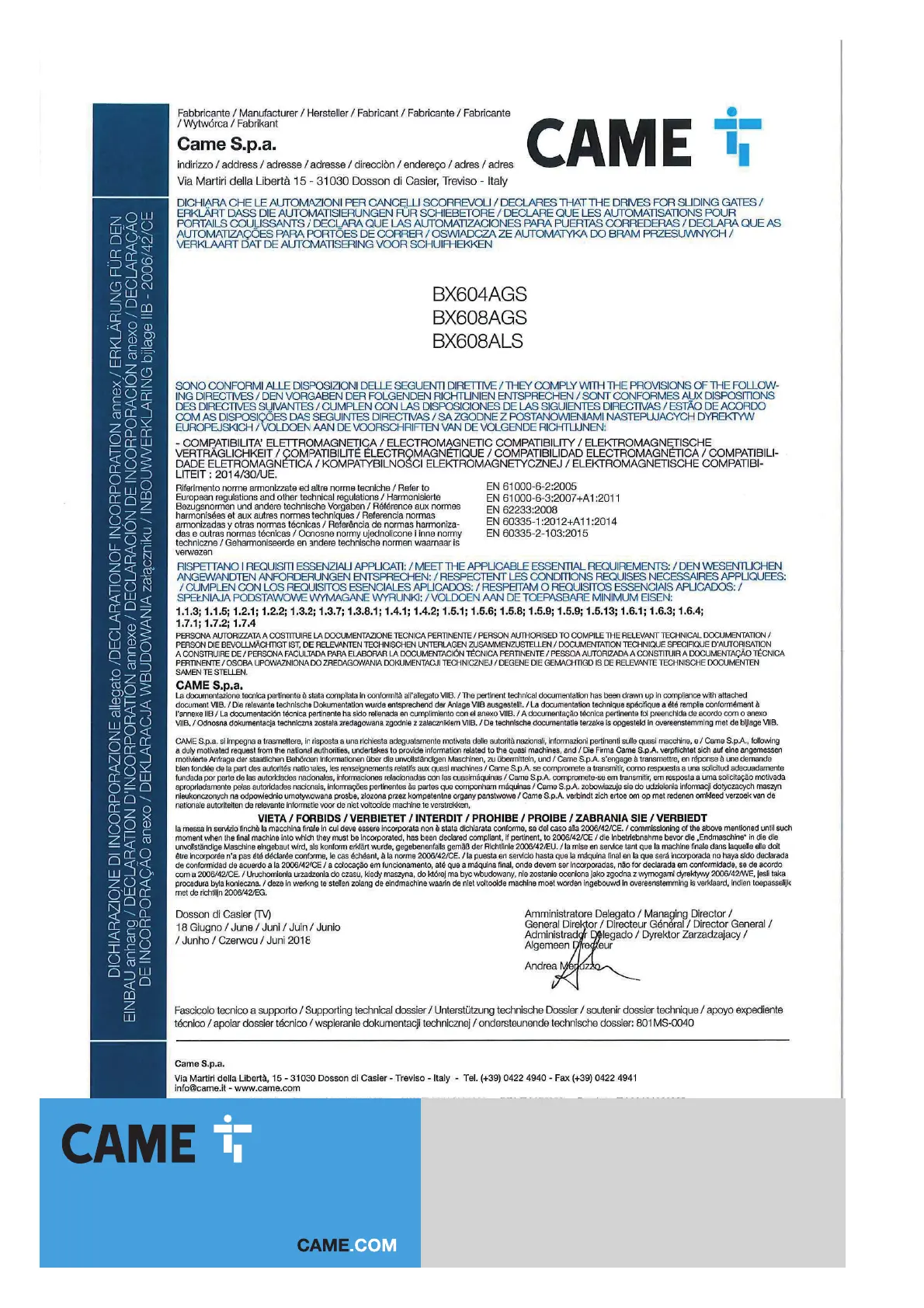 28 - Manual FA01413-EN - 02/2020 - © CAME S.p.A. - The contents of this manual may be changed at any time and without notice. - Translation of the original instructions