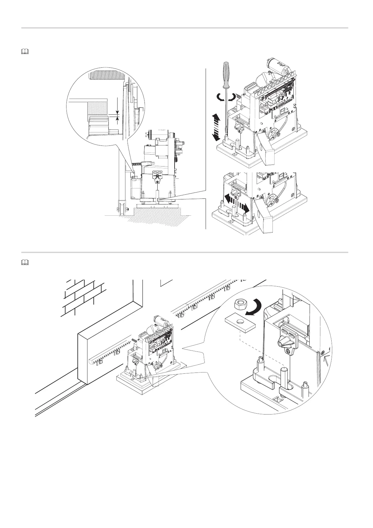 Wyregulować odległość połączenia koło zębate-zębatka za pomocą gwintowanych stalowych nóżek (regulacja pionowa) iotworów (regulacja pozioma).