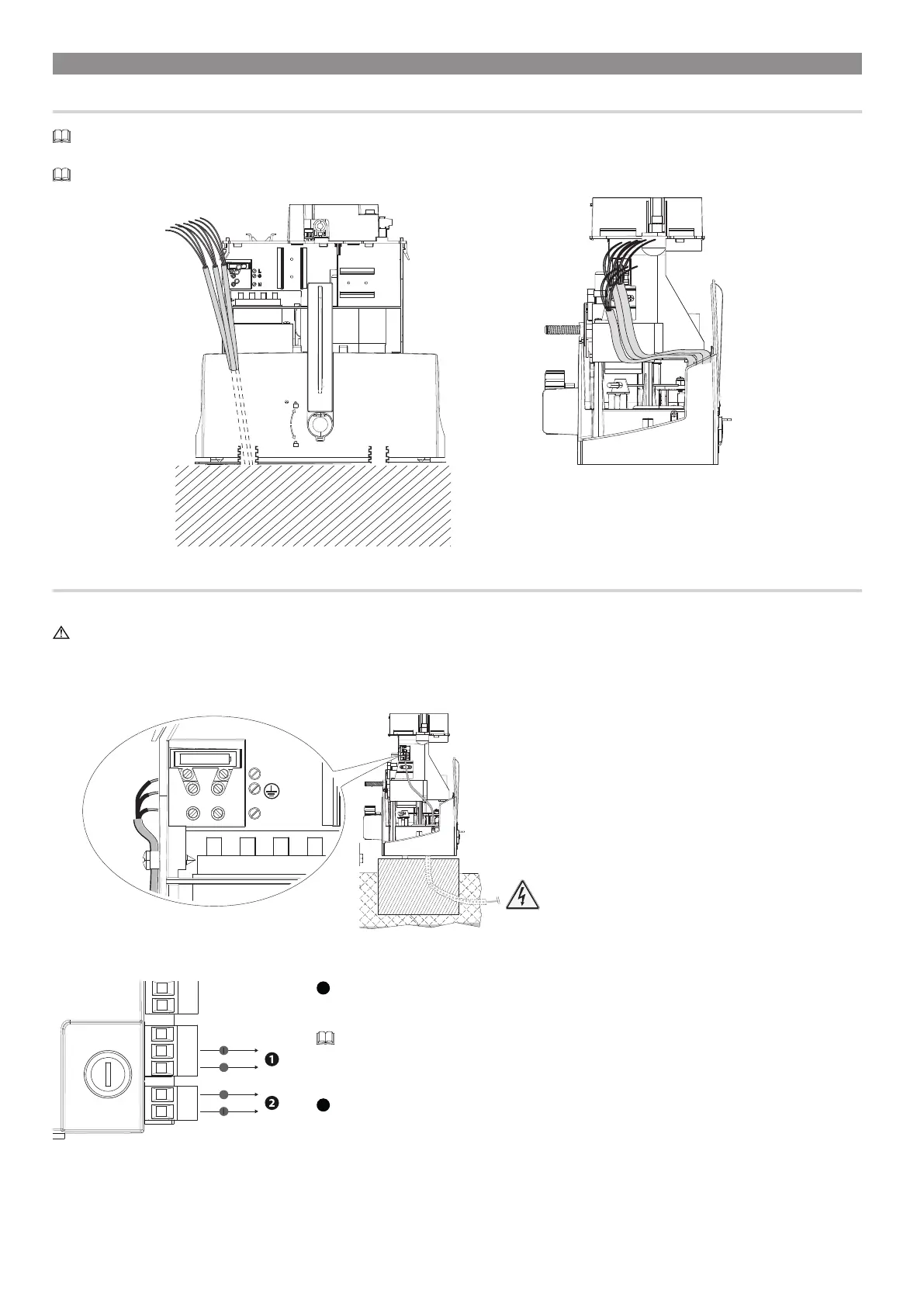 Use cable glands to connect the devices to the control panel. One of these must be used exclusively for the power supply cable.