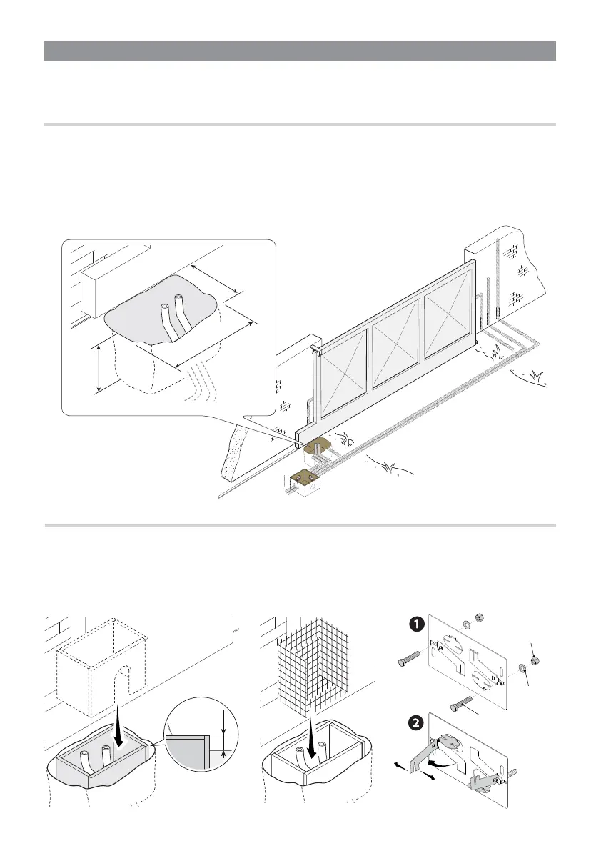 Per il collegamento del motoriduttore si consiglia un tubo corrugato Ø 40 mm, per gli accessori invece, si