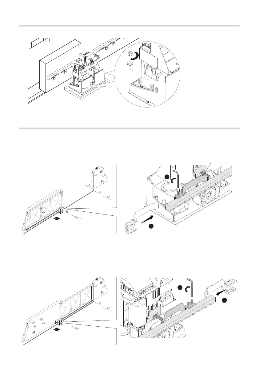 Completata la regolazione, fissare il motoriduttore alla piastra con le rondelle e i dadi.