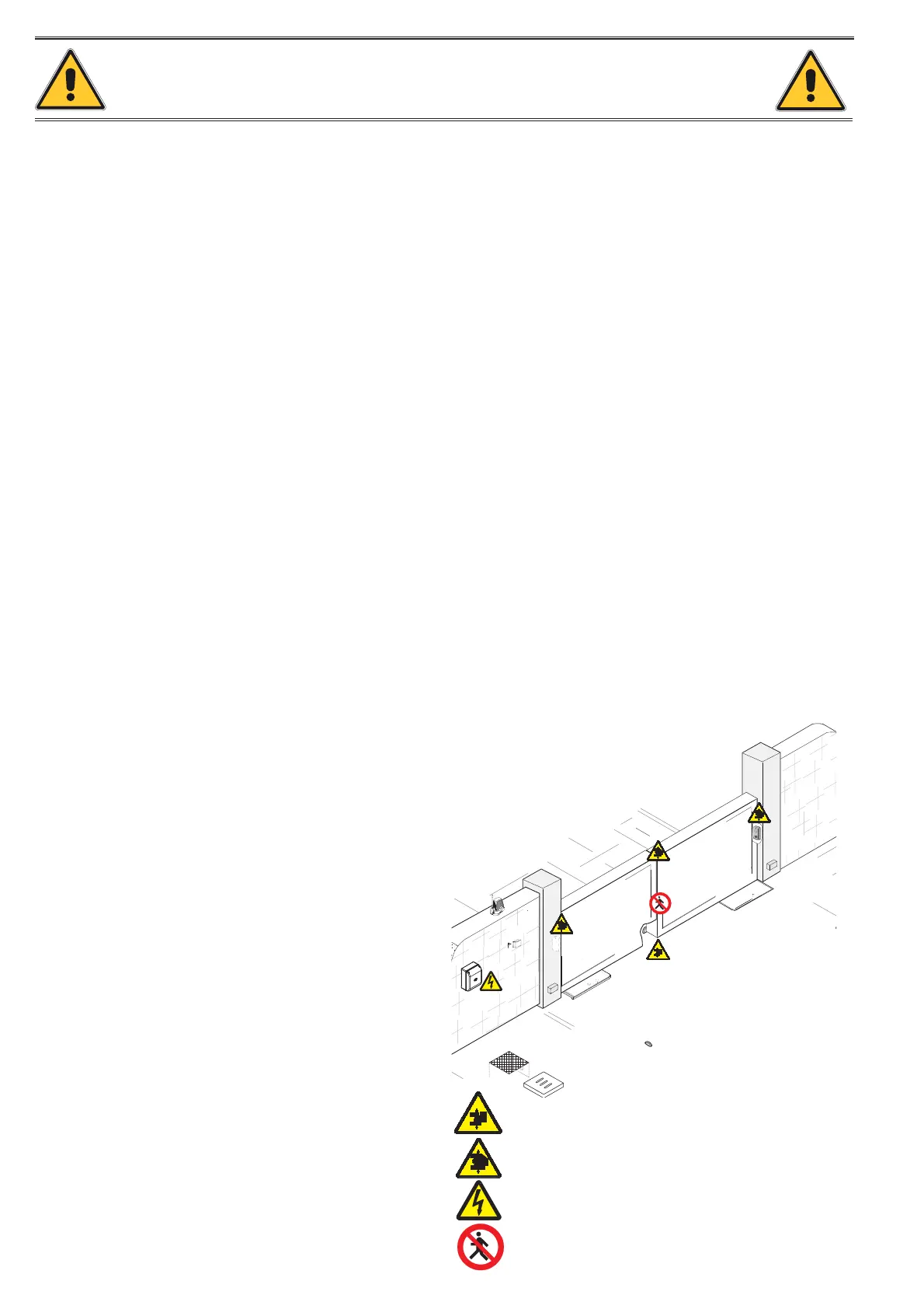 • TENERE LIBERE DA INGOMBRI E PULITE LE AREE DI MANOVRA DEL CANCELLO. CONTROLLARE