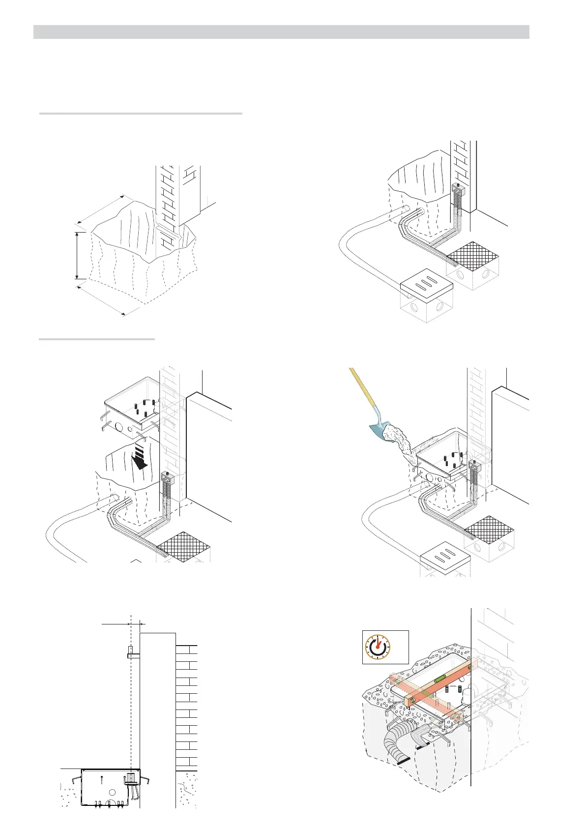Préparer les boîtiers de dérivation et les tuyaux ondulés nécessaires pour les raccordements et pour le tuyau de drainage.