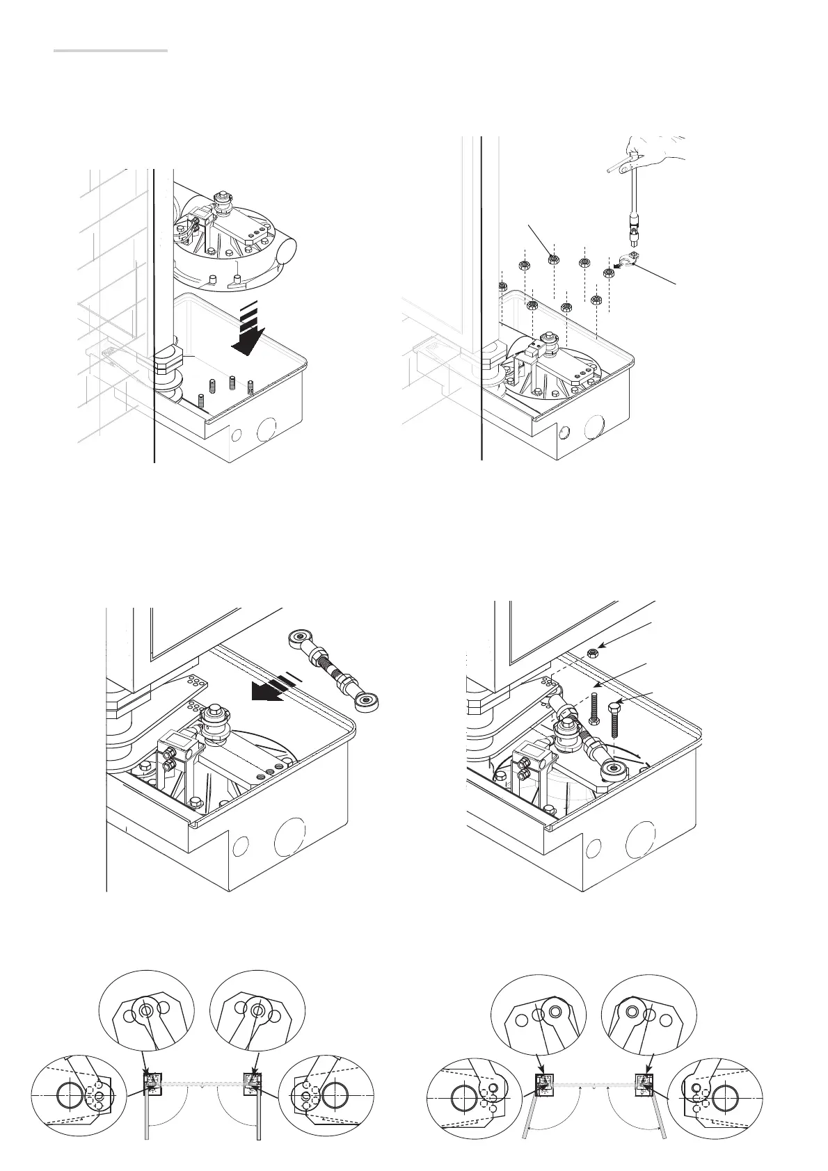 Установите соединительную тягу между рычагом редуктора и рычажным узлом, вставив болты в отверстия и затянув гайки.