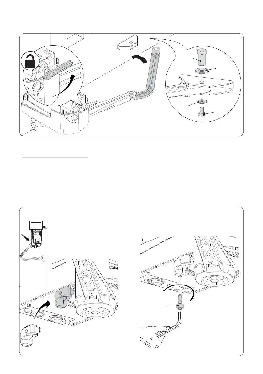 Sbloccare il motoriduttore, e fissare il braccio condotto alla staffa cancello come indicato nel disegno.
