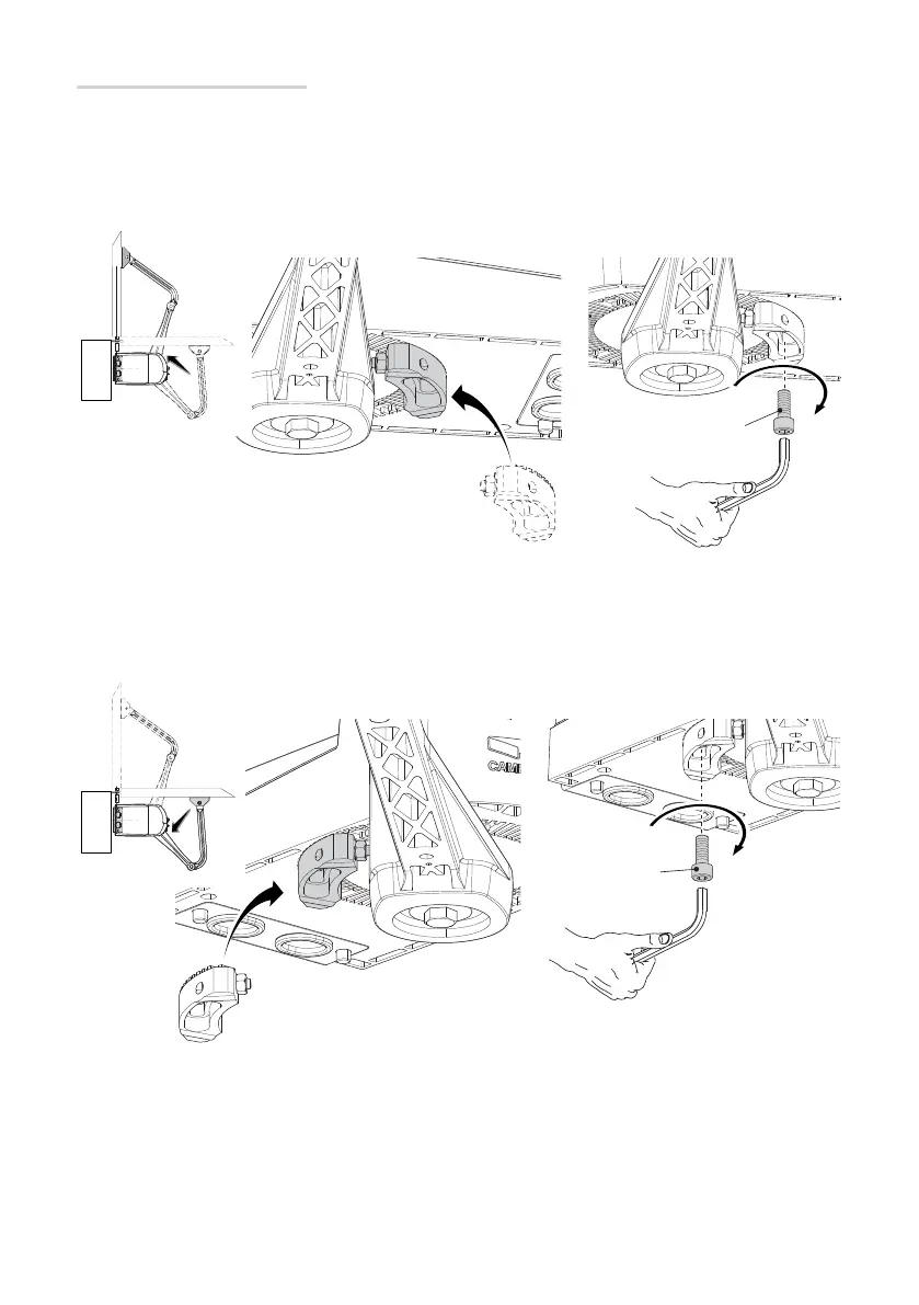Aprire completamente l’anta. Posizionare il fermo sotto la cassa accostandolo al braccio di trasmissione e