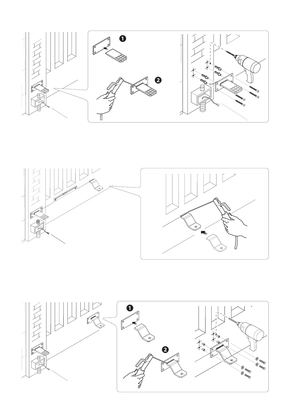 Fixer l'étrier au point prévu à l'aide de chevilles et de vis appropriées ; le souder en cas de pilier métallique.