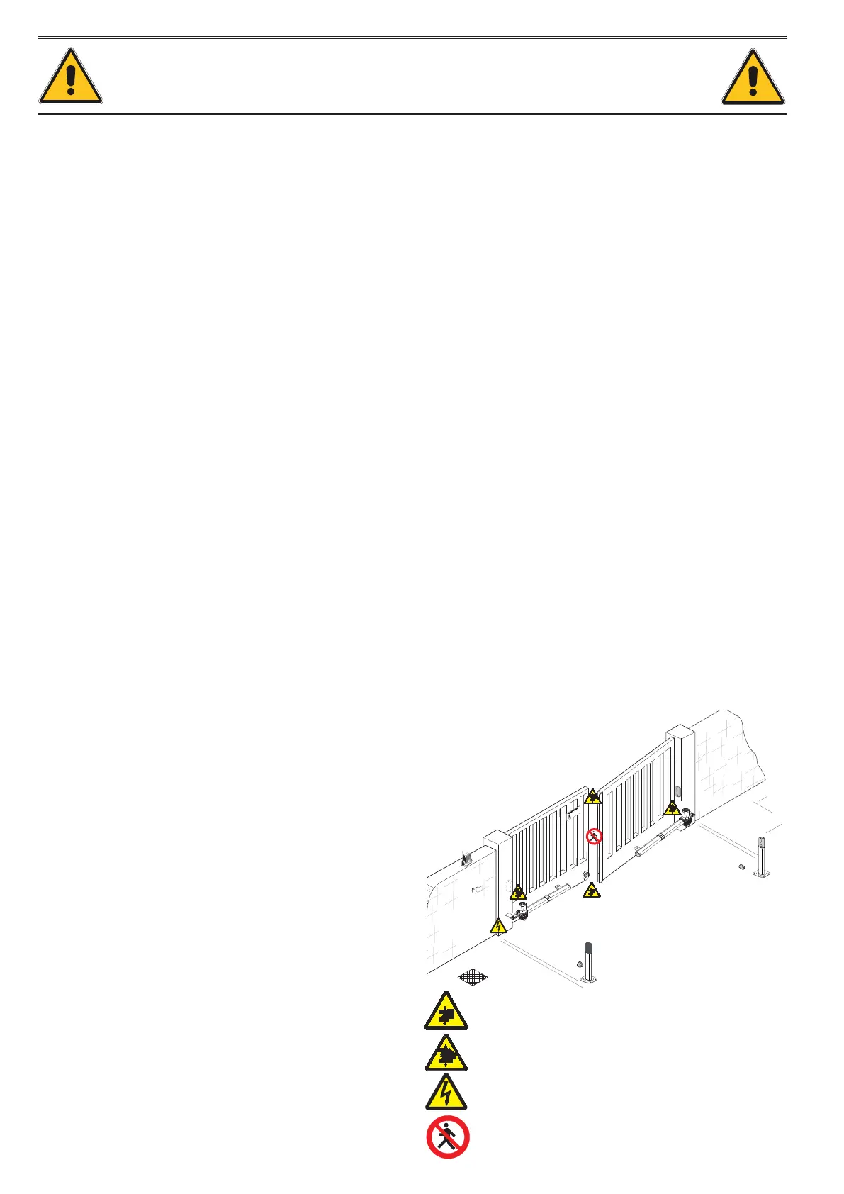 • ОСТАВЛЯЙТЕ СВОБОДНЫМ И ЧИСТЫМ УЧАСТОК ДВИЖЕНИЯ ВОРОТ. СЛЕДИТЕ