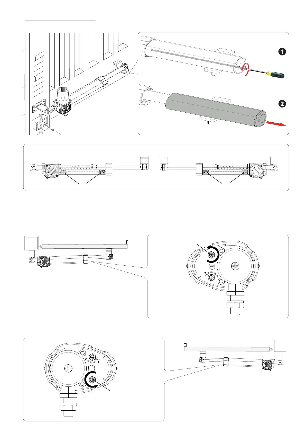 Перед тем как приступить к регулировке крайних положений, необходимо снять кожух штока, ослабив затяжку винта.