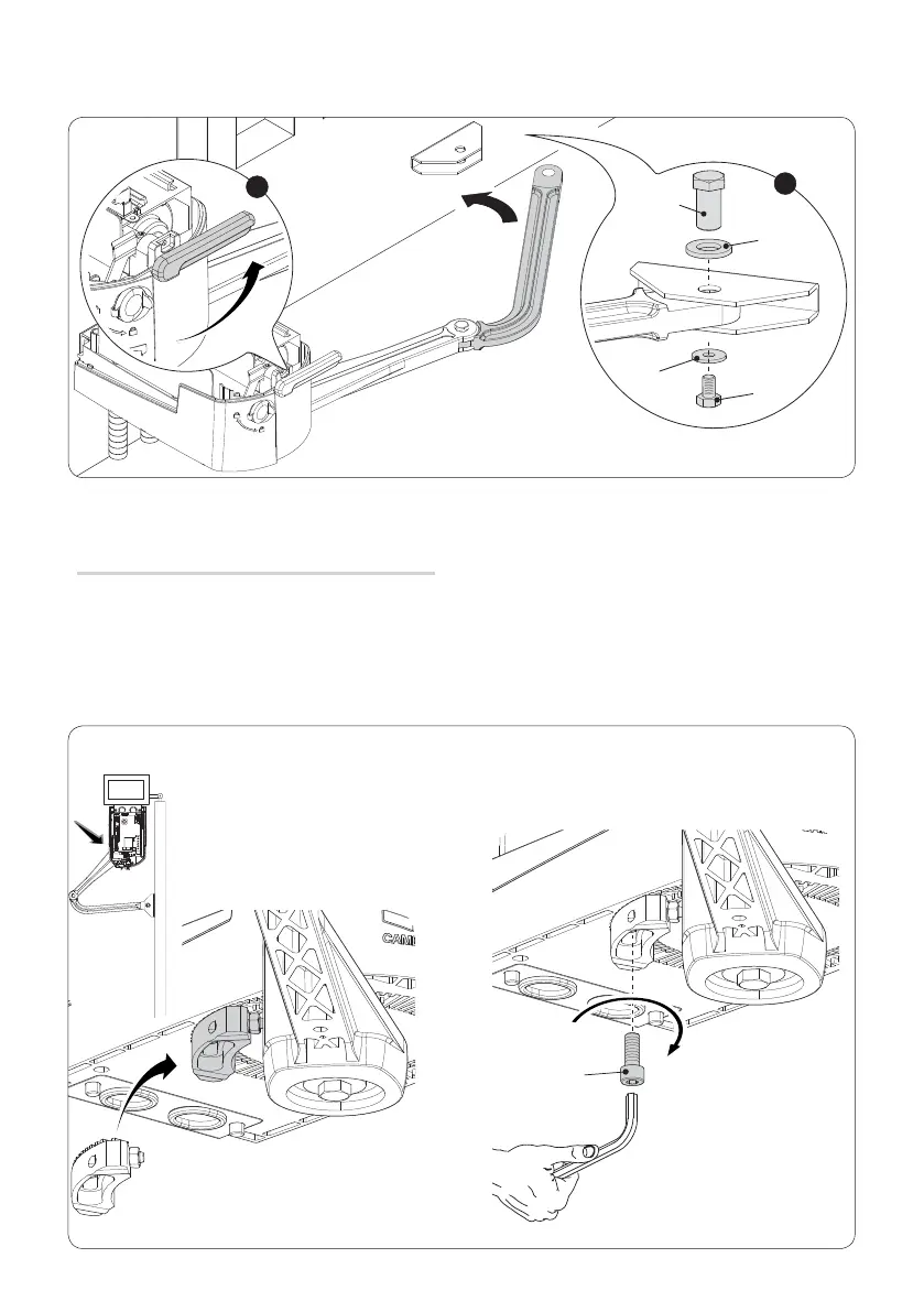 Разблокируйте мотор-редуктор и прикрепите рычаг-трубу к переднему кронштейну, как показано на рисунке