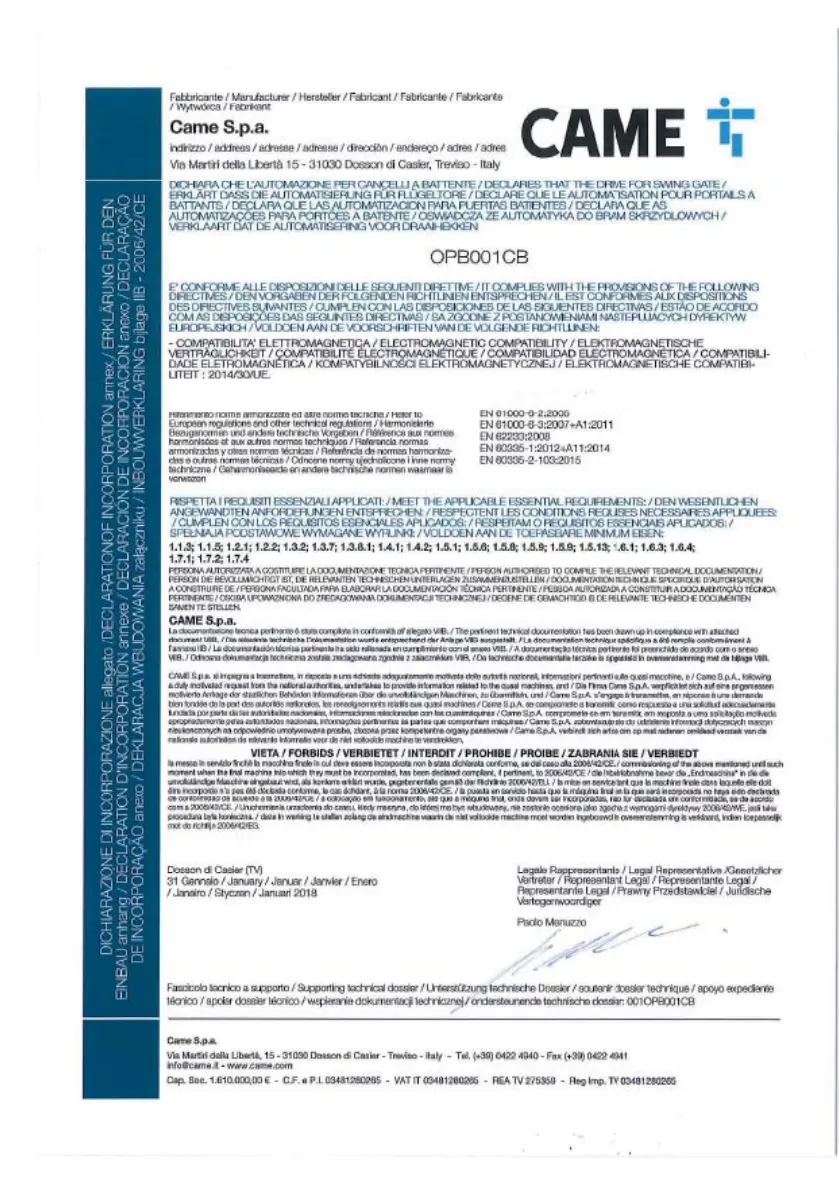 CAME OPB001CB - Page 127