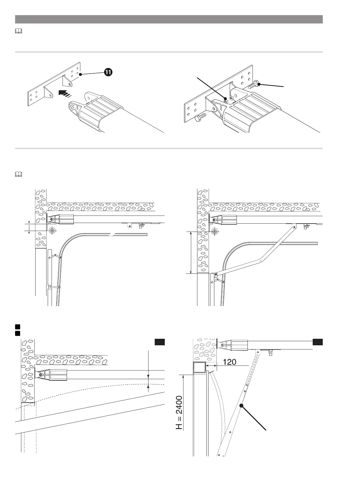Sur les portes basculantes à ressorts (à enfoncement total), positionner le rail à 20 mm du point d'encombrement le plus haut durant l'ouverture.