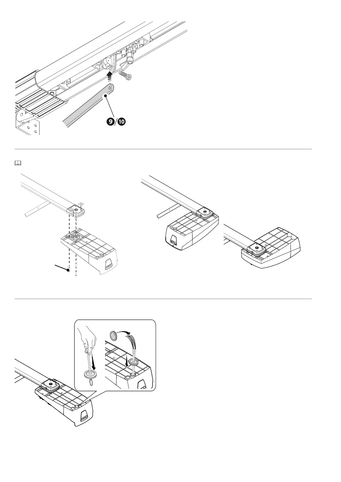 Закрепите автоматику на направляющей тремя прилагаемыми винтами.