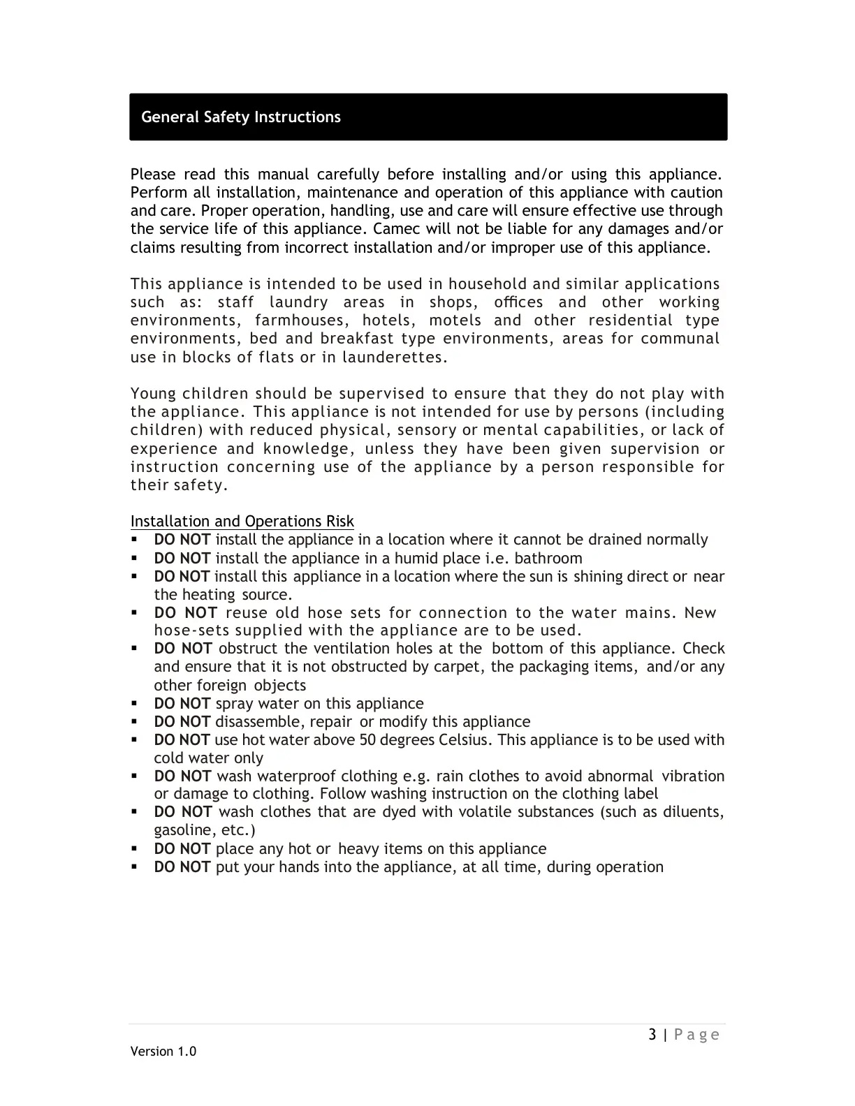 the service life of this appliance. Camec will not be liable for any damages and/or