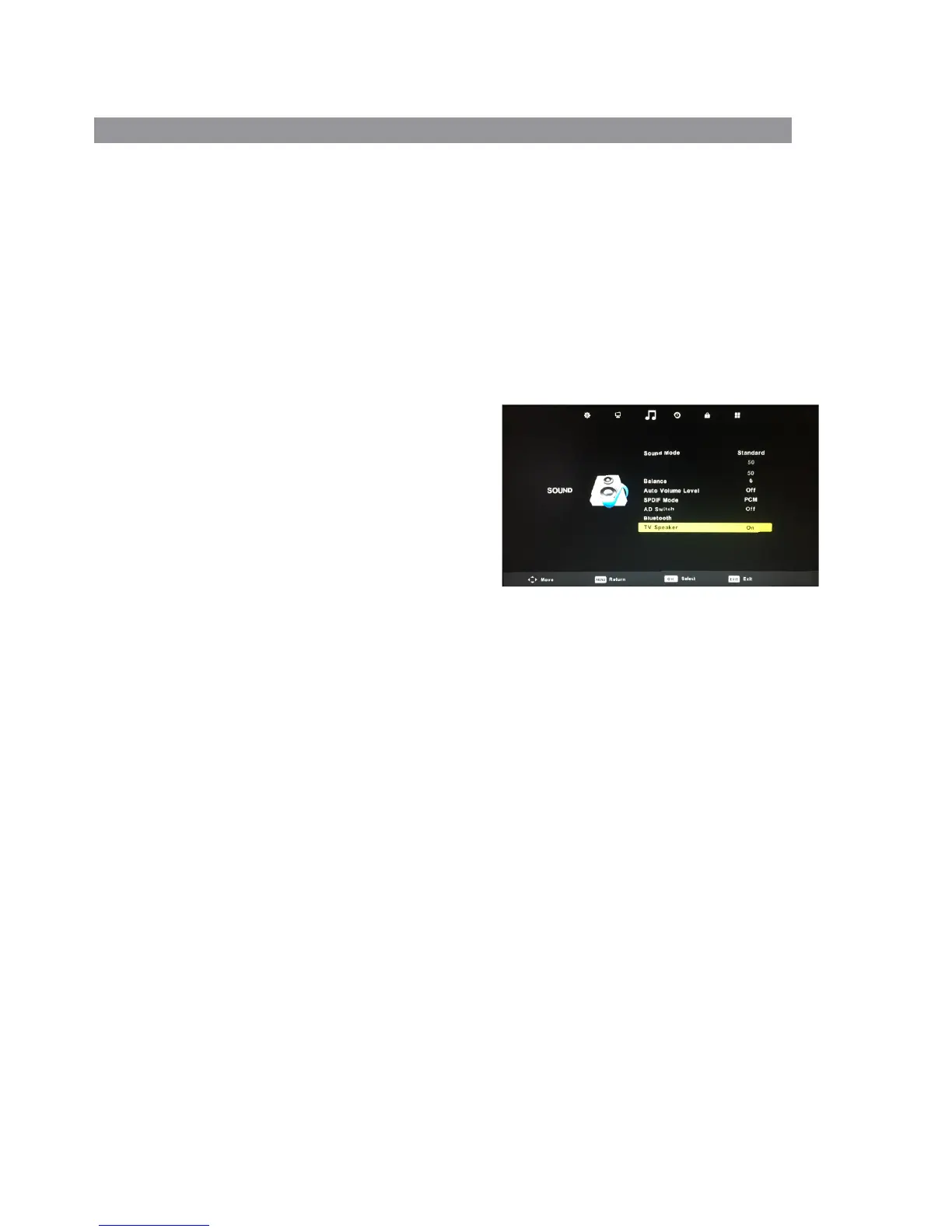 TV’s internal speakers on or off.