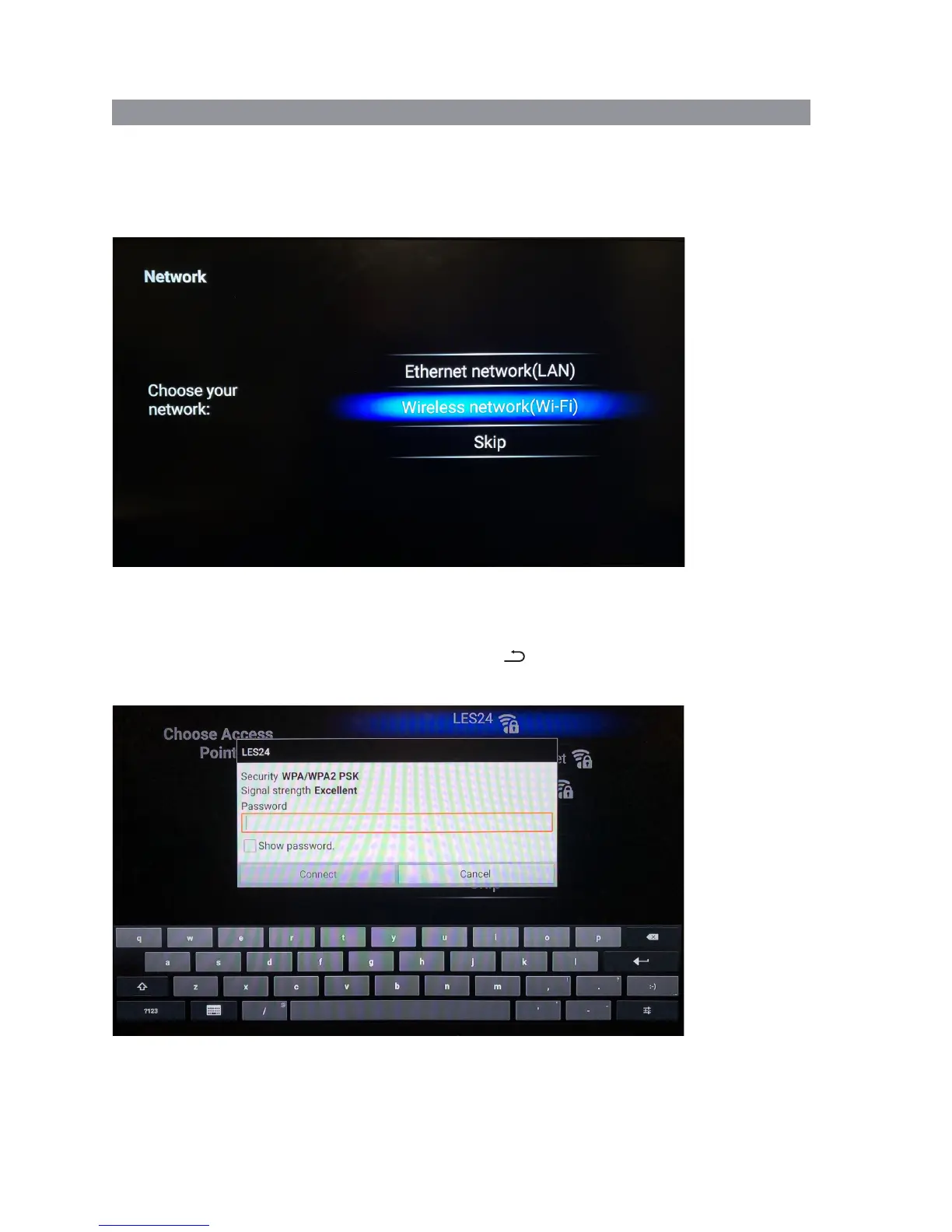 password using the arrow keys on the remote in conjunction with the on-screen keyboard.