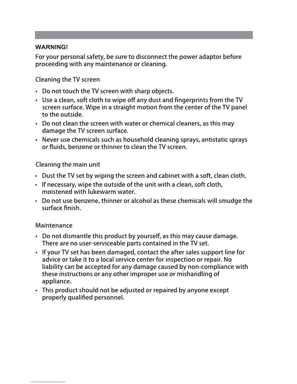 Camec RV Media Evolution 044694 - Cleaning and Maintenance