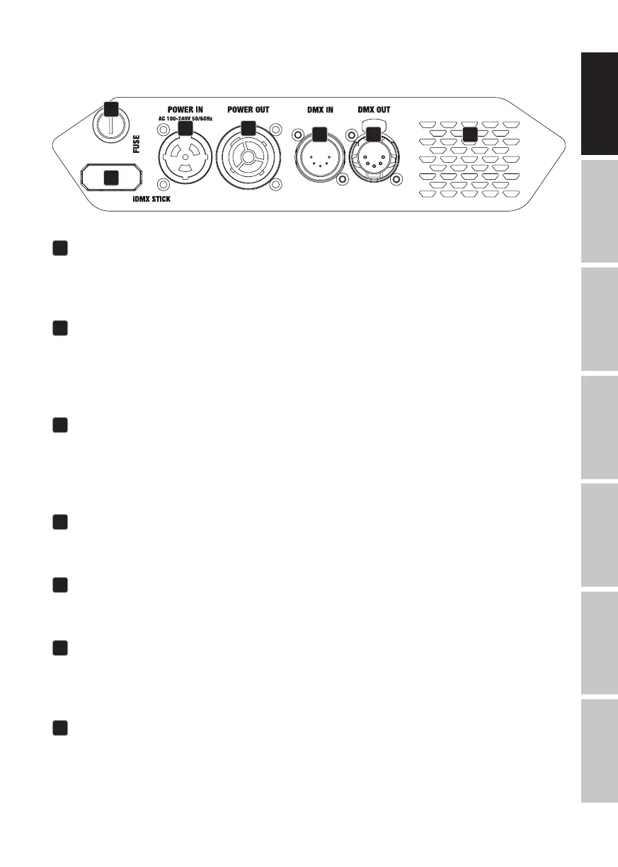 Connection for the optional iDMX stick for wireless DMX operation (insert the iDMX stick with the