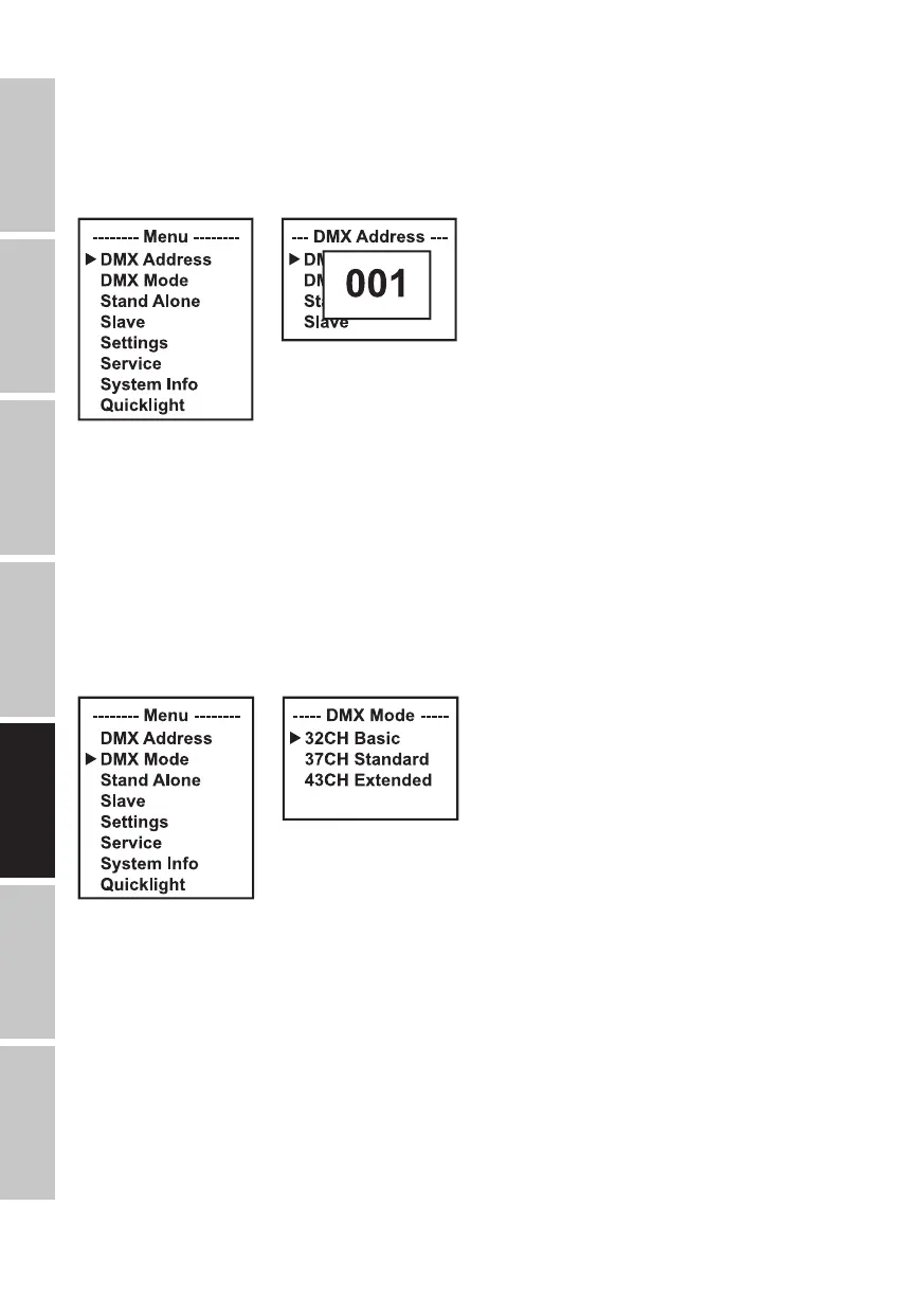 proszę użyć ⏶ lub ⏷, aby wybrać pozycję menu DMX Address i potwierdzić przyciskiem