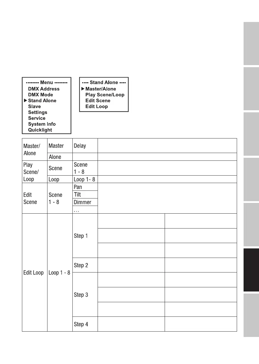 (Loop1-8). Le impostazioni vengono effettuate separatamente per ogni scena e per ogni loop e
