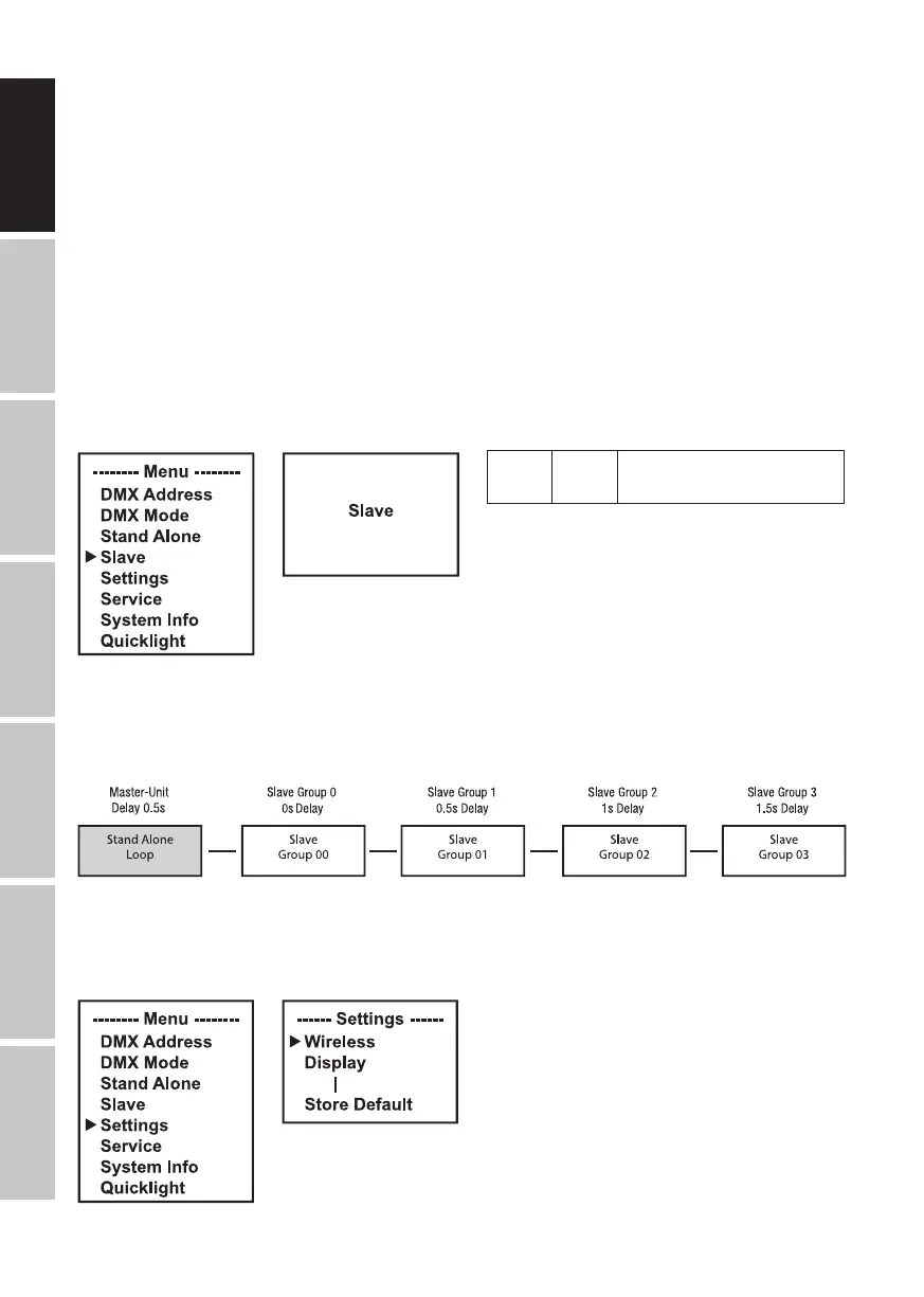 master unit; the delay factor is set in the slave menu of the corresponding fixture (Group). This