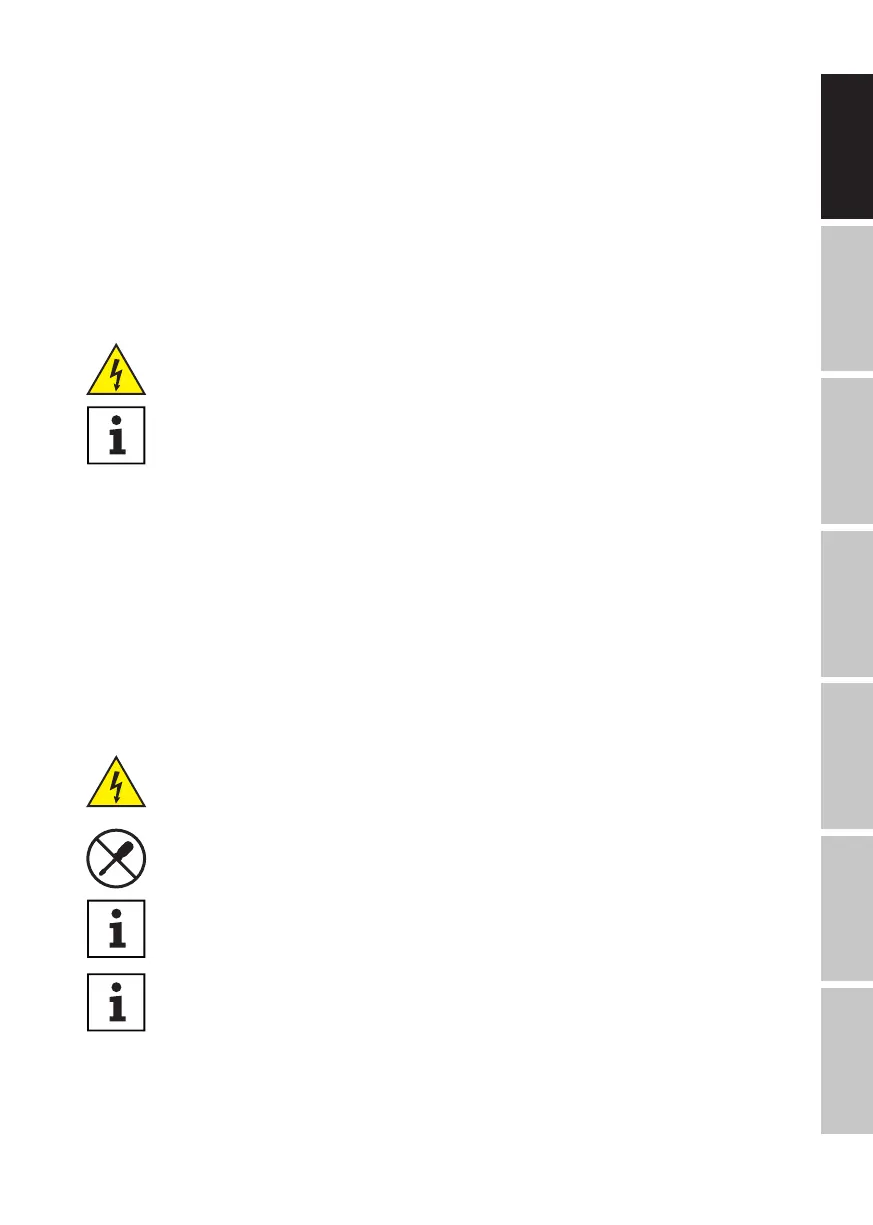 DANGER! There are live components in the device. Even after disconnecting from