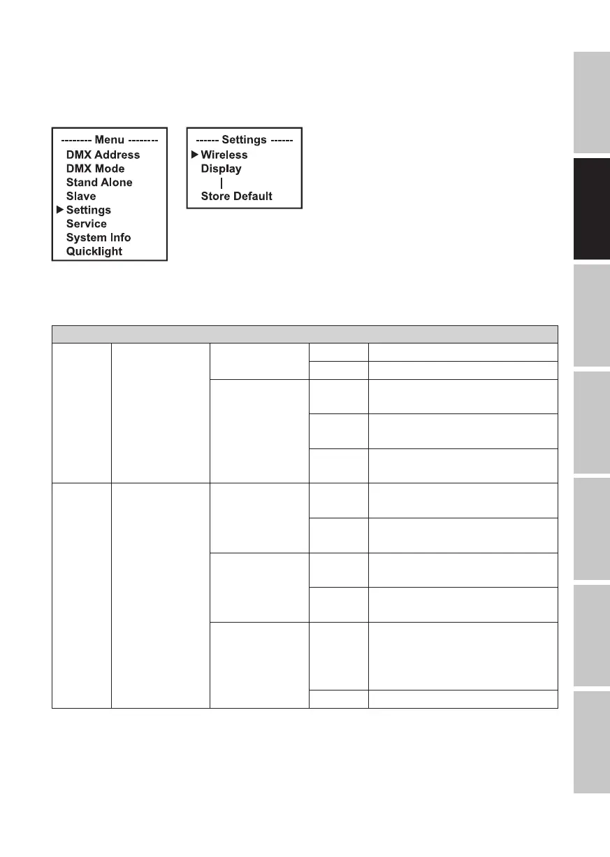 Settings (Fettdruck = Werkseinstellung)