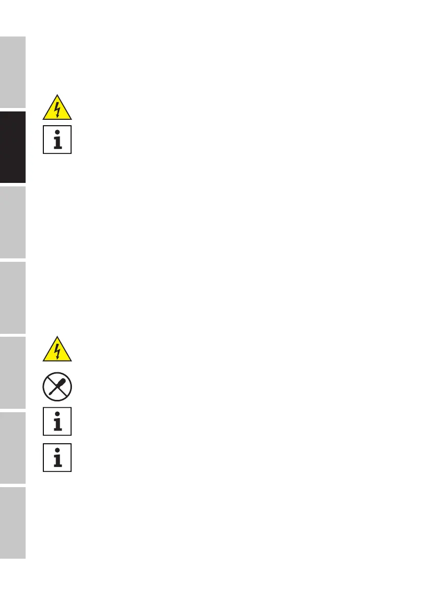 GEFAHR! Im Gerät befinden sich spannungsführende Bauteile. Auch nach Trennung