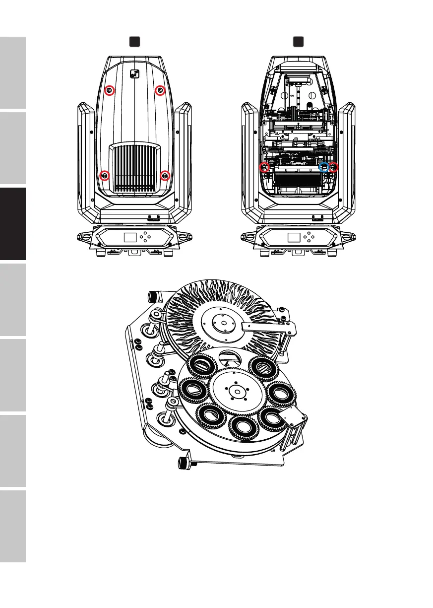 4. Placez le module sur une surface propre et plane, les roues de gobos orientées vers le haut.
