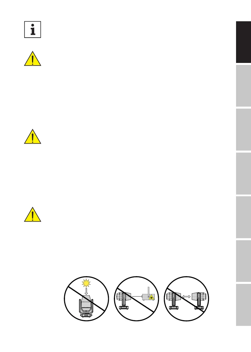 Do not expose the device and especially the lens opening to direct sunlight, laser