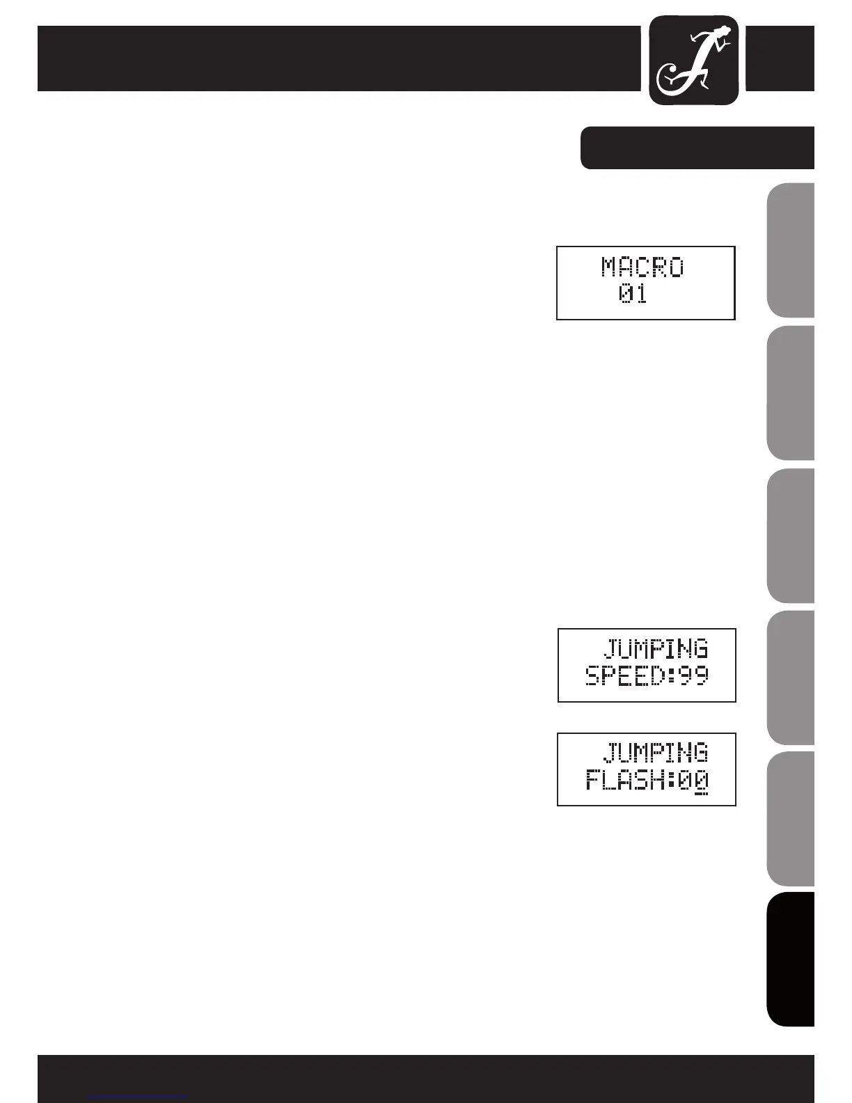 FLASH:01 = circa 1Hz, FLASH:99 = circa 20Hz). Confermare con ENTER.
