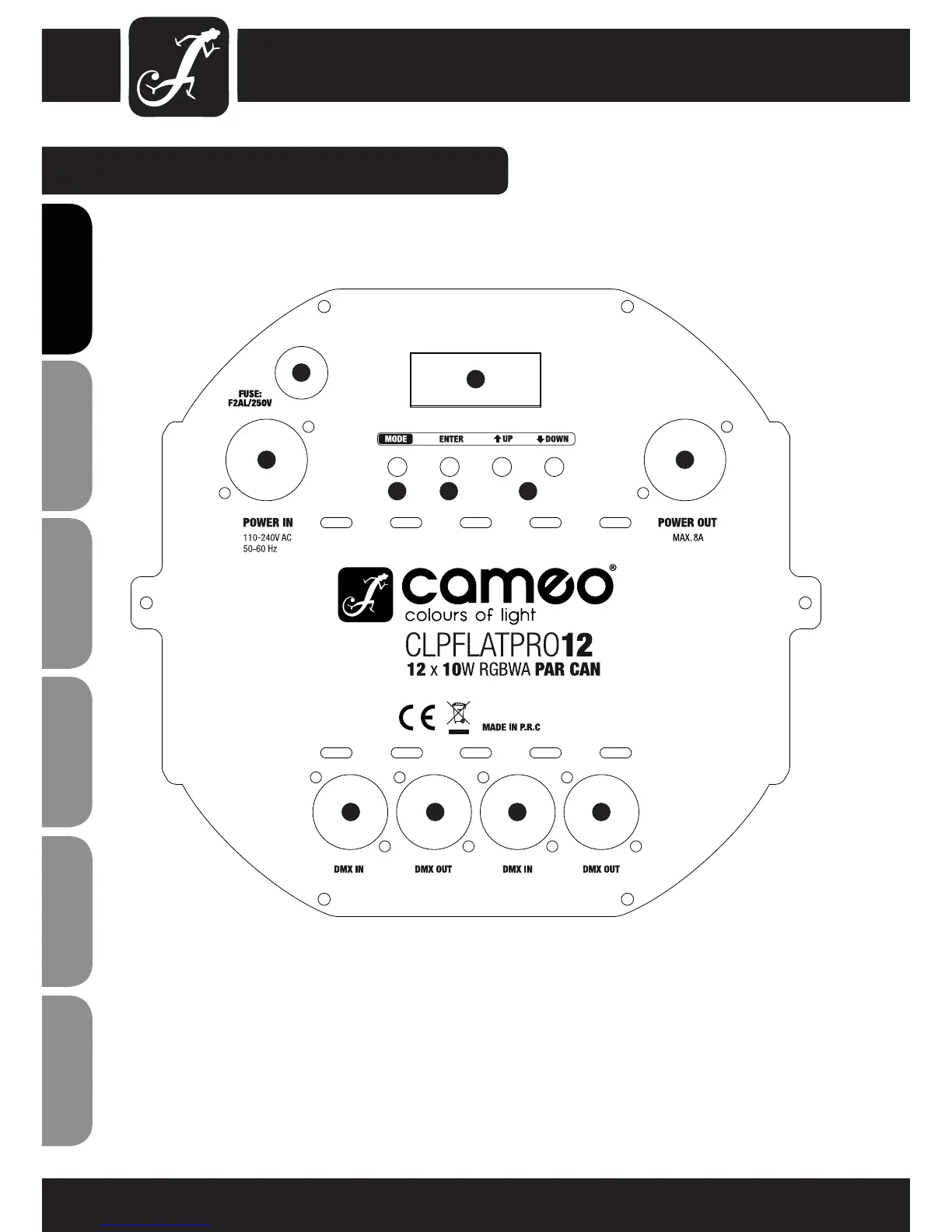 Cameo CLPFLATPRO7 - Controls and Display Diagram; CLPFLATPR012 Control Panel Layout