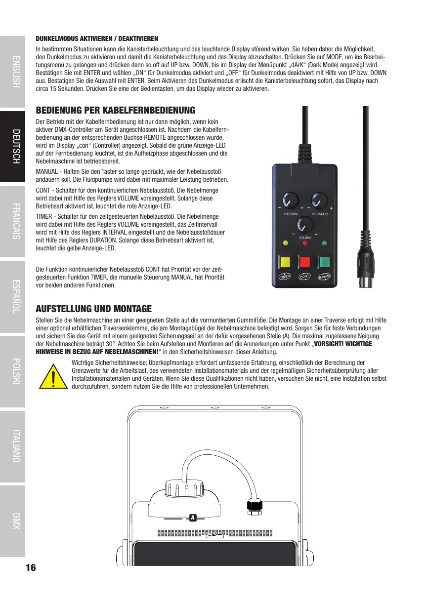 HINWEISE IN BEZUG AUF NEBELMASCHINEN!“ in den Sicherheitshinweisen dieser Anleitung.