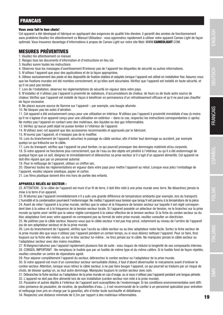 optimale. Vous trouverez davantage d‘informations à propos de Cameo Light sur notre site Web: WWW.CAMEOLIGHT.COM.