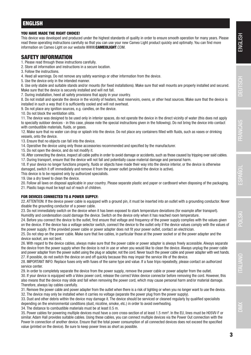 read these operating instructions carefully so that you can use your new Cameo Light product quickly and optimally. You can find more