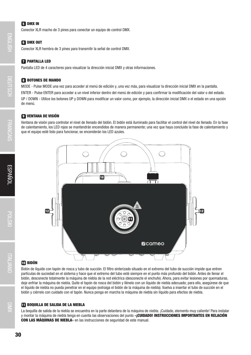 CON LAS MÁQUINAS DE NIEBLA» en las instrucciones de seguridad de este manual.