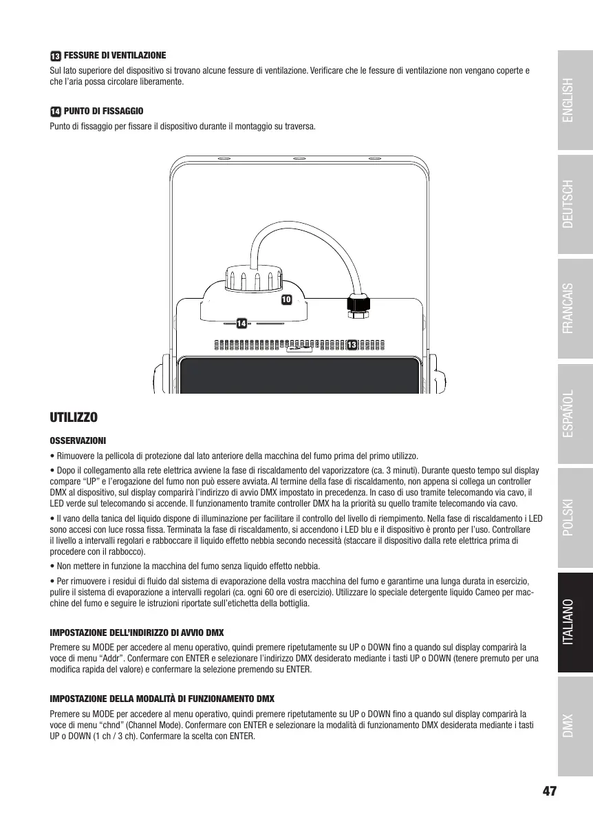 • Per rimuovere i residui di fluido dal sistema di evaporazione della vostra macchina del fumo e garantirne una lunga durata in esercizio,