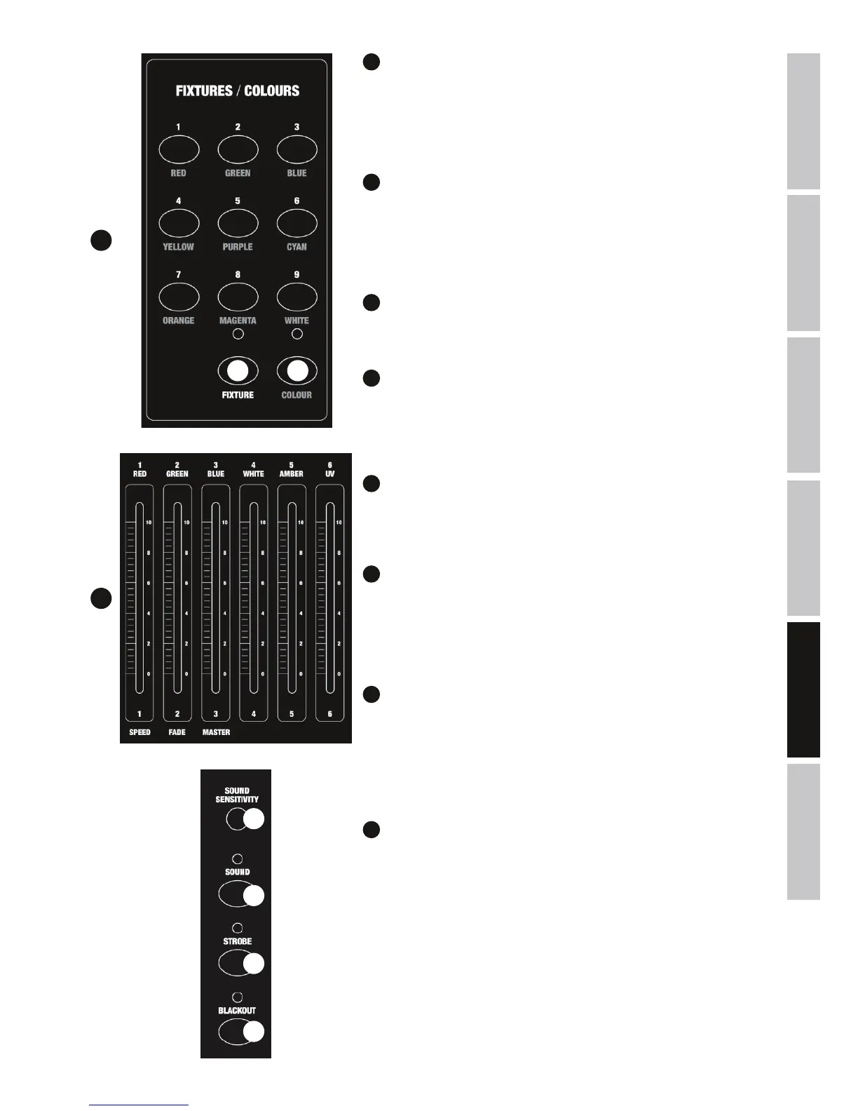 Tłumiki nastawne kanałów od 1 do 6 służą do sterowania urządzeniami DMX